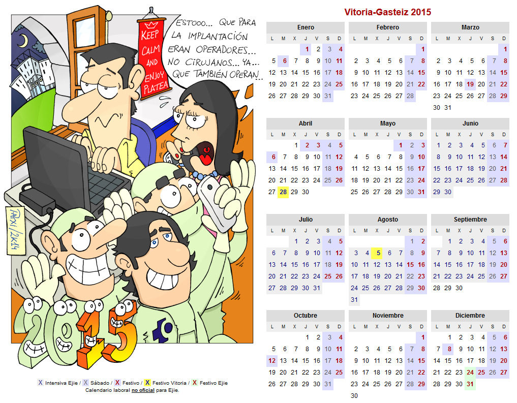 el que está pensado el dibujo: Para Vitoria-Gasteiz, marcado con los festivos y jornadas intensivas correspondientes al calendario laboral