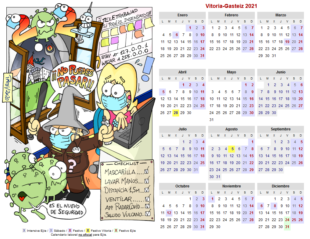 el que está pensado el dibujo: Para Vitoria-Gasteiz, marcado con los festivos y jornadas intensivas correspondientes